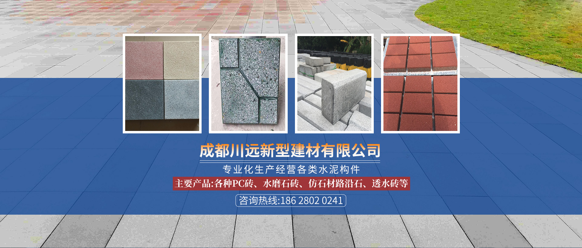 成都川遠新型建材有限公司是一家專業(yè)化生產(chǎn)經(jīng)營透水磚、pc磚定制,仿石材路沿石、水磨石磚的企業(yè)。擁有了面積達1000多平方的生產(chǎn)基地,多套完整的大、中型生產(chǎn)設備和眾多專業(yè)生產(chǎn)技術人員。本廠生產(chǎn)的各種型號等...
